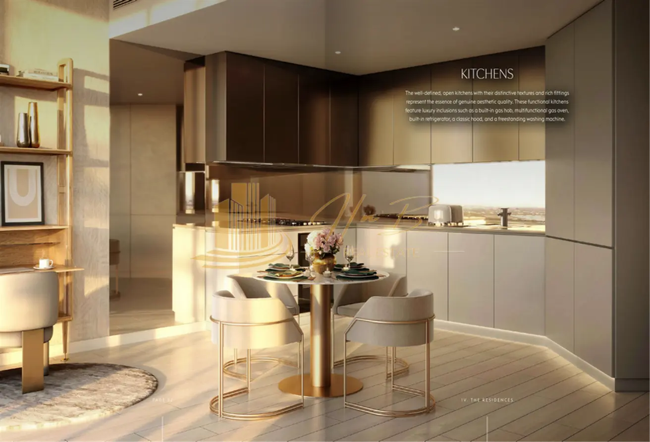 The well-defined, open kitchens with their distinctive textures and rich fittings represent the essence of genuine aesthetic quality. These functional kitchens feature luxury inclusions such as a built-in gas hob, multifunctional gas oven, built-in refrigerator, a classic hood, and a freestanding washing machine.